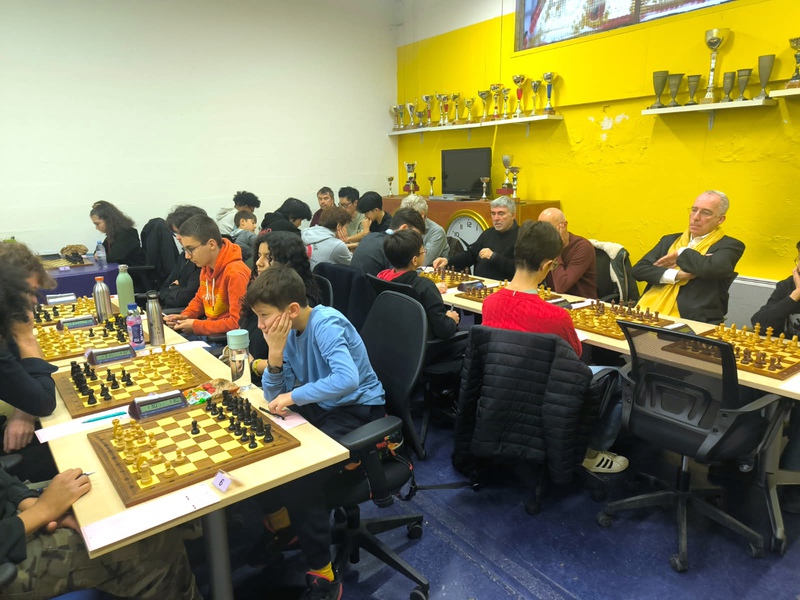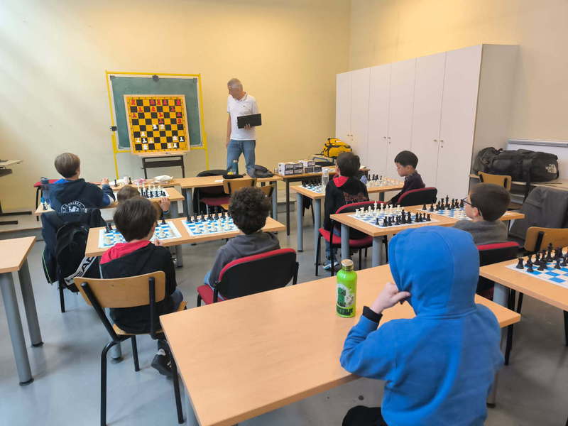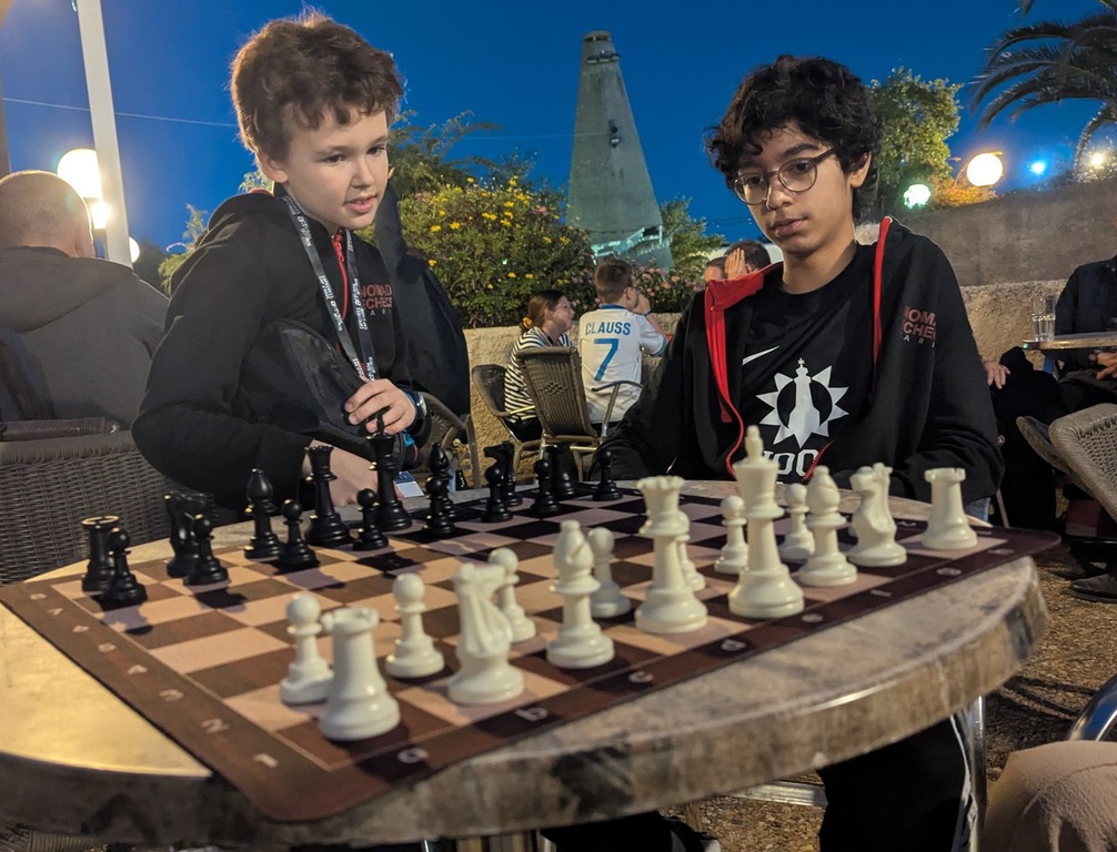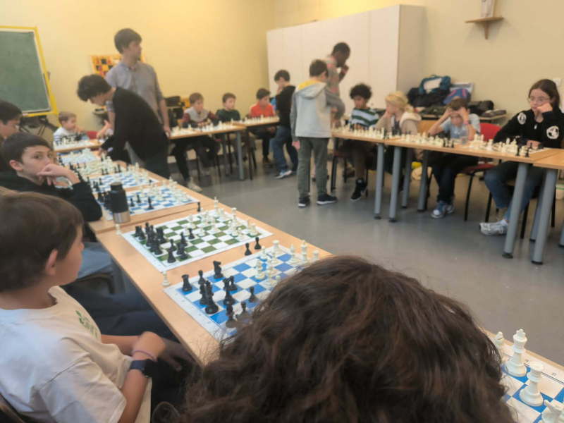 Après 2h de jeu disputé les poussins ramènent chacun 1 point de victoire - avec les pièces noires ! - et lancent l'équipe. Magnifique. 2-0.