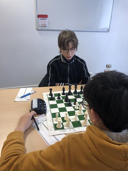 En N1 ça ne démarre pas comme espéré. Soren fait un coup illégal et perd un cavalier...et la partie. C'est une première pour le jeune Soren à ce niveau. 0-1. Noah égalise. 1-1