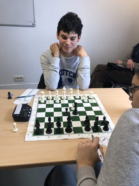 Il reste Pierre-Louis et Victor - tous les deux avec les noirs - pour essayer de faire quelque chose ! Pierre-Louis retourne une situation perdante et gagne le point ! 4 à 3.