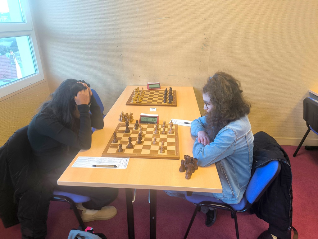 Inès annule avec les noirs face à un Elo à +100. Solide.