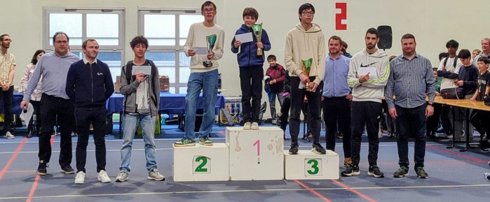 En U16 Agathe remporte le titre chez les filles (!!) et rejoint ainsi Leila et Inès (qualifiées d'office) au Championnat de France. En mixte Andrey s'adjuge son enième podium (!) avec 7 points et sera accompagné par Noam et Antonin qui réalisent un tournoi costaud à 6/9.
