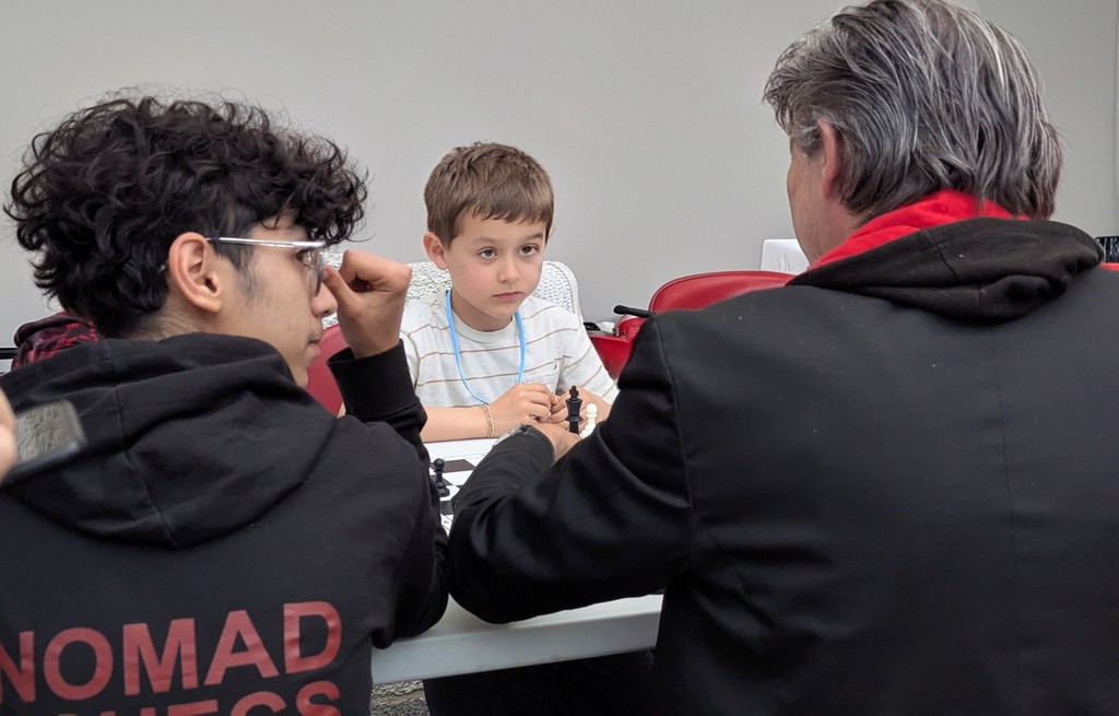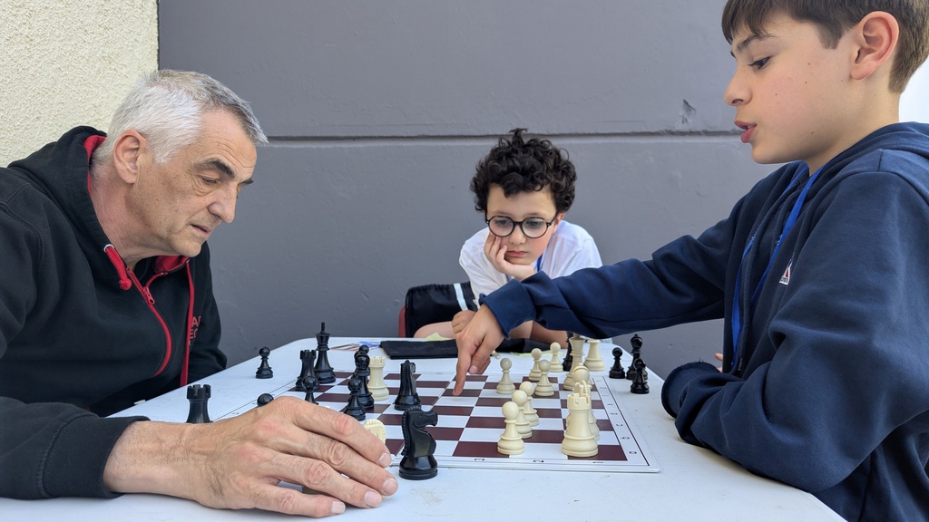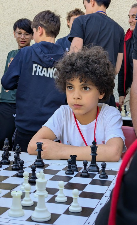 Cela débute par une victoire et une défaite logiques (au niveau de l'Elo seulement !) chez les poussins : victoire d'Alec et défaite d'Eli. 1-1.