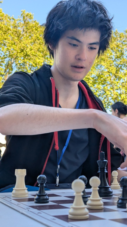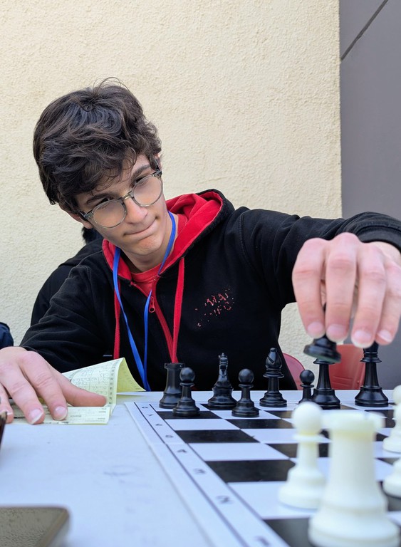 On se bat ! Et victoire de Noam. La perf au premier échiquier ! Et avec les noirs. 5-7.
