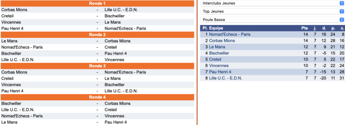 | 5 | Matelo VINET (1797) - B | 2 | 0 | Anna ROSSET (1727) - N |