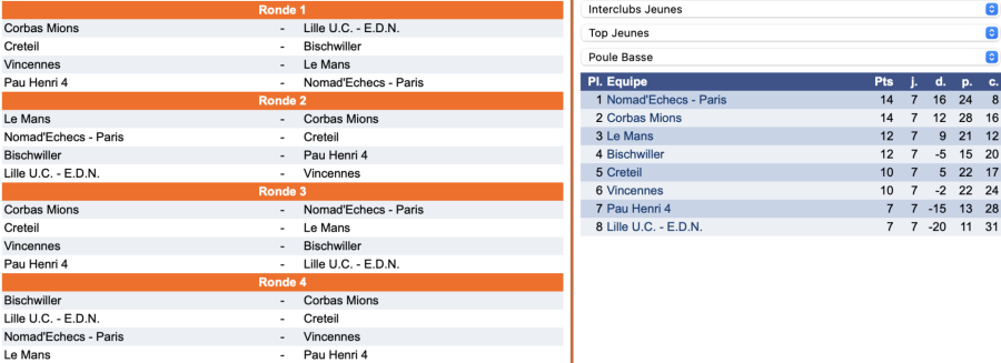 | 8 | Eli KNOSSOW (1299) - B | 0 | 1 | Adrien DOUBLE (1521) - N |