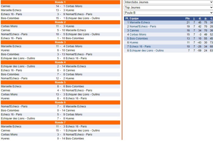 7 | Jean DESFOSSES (1671) - N | 0 | 1 | Sacha AYACHE (1528) - B |