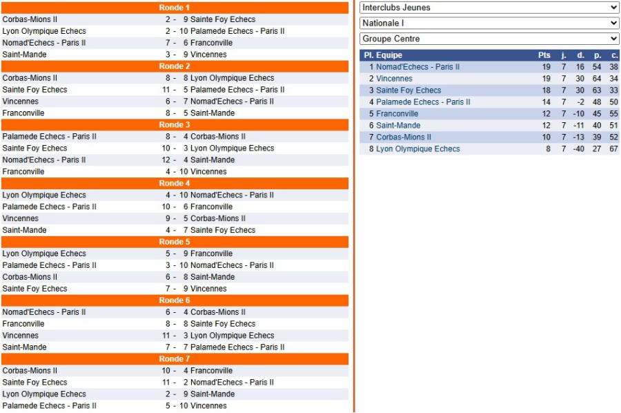 | 7 | Théo-Bach HEURTEUX (1499) - B | 0 | 1 | Fael BOUZID (1602) - N |