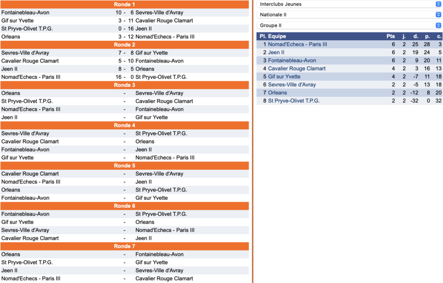 | 4 | Hugo MARTINE (1692) - N | 2 | 0 | Antoine LEFRANCOIS (1299) - B |