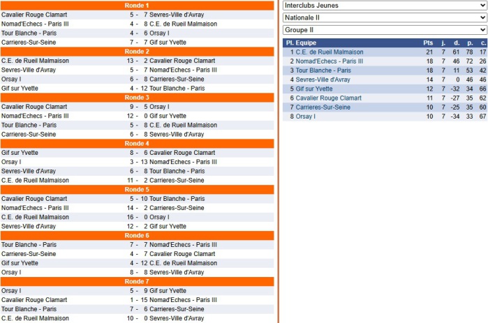 | 3 | Romain GUINOIS (1736) - B | 0 | 2 | Lysandre JASMIN (1791) - N |