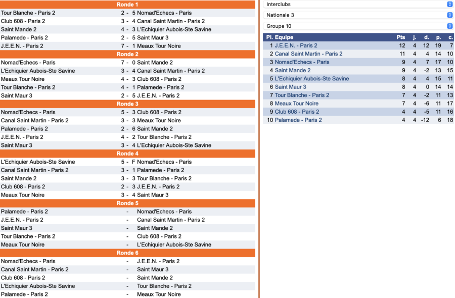 Ronde 4 : Nomad F - 5 L'échiquier Aubois