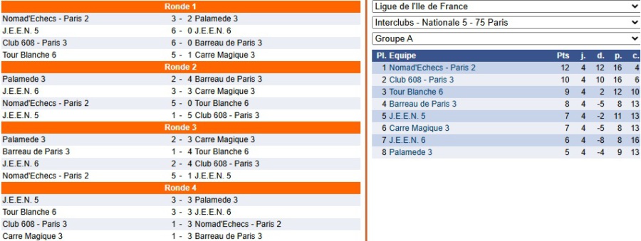 | 4 | Inès FISCHLER (1797) - N | 1 | 0 | Elie MOUSSAFIR (1633) - B |